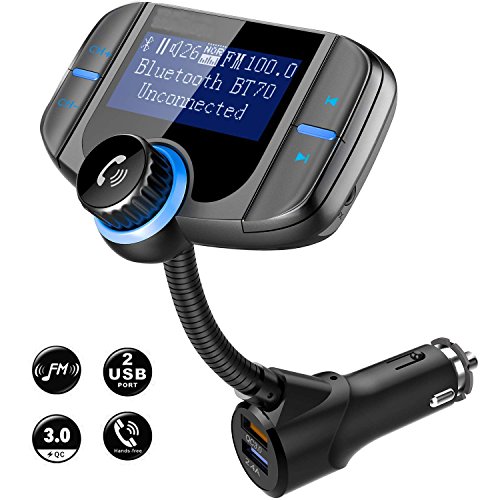 • Bluetooth FM Transmitter, KINHOO Wireless Car Stereo Radio Adapter Receiver, Hands-Free Calling Car Kit with 1.7’’ Display, QC3.0 & Smart 2.4A Dual USB Ports, Support TF Card, AUX Input/Output