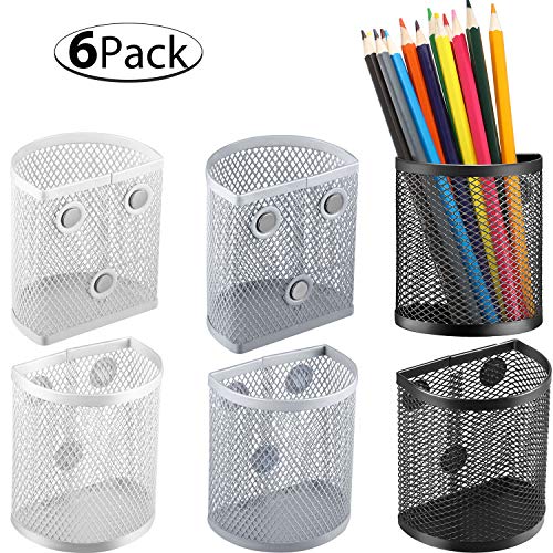 • 6 Pack Magnetic Locker Organizer, Magnetic Pencil Holder, Mesh Pencil Holder Baskets with Extra Magnets for Whiteboard, Pen, Refrigerator, Locker Accessories (Silver, White and Black)