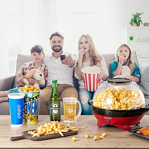 • AICOOK Electric Hot Oil Popcorn Popper Machine, Popcorn Maker with Stirring Rod Offers Large Lid for Serving Bowl and Convenient Storage, 6-Quart/24-Cup, Red