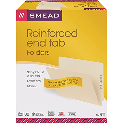 • Smead Shelf-Master End Tab File Folders, 100 Count, Manila, Reinforced Straight-Cut Tabs, Letter Size (24110)