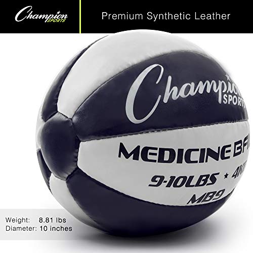 • Champion Sports Exercise Medicine Balls, 9-10 lbs, Leather with No-Slip Grip - Weighted Med Ball Set for Weight Training, Stability, Plyometrics, Cross Training, Core Strength - Heavy Workout Ball