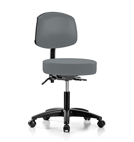 • Perch Walter Rolling Height Adjustable Doctor's Stool with Back for Carpet or Linoleum | Desk Height | 300-Pound Weight Capacity | (Cinder Fabric)