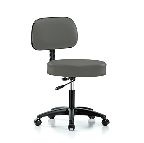 • Perch Walter Rolling Height Adjustable Exam Stool with Back for Hardwood or Tile | Desk Height | 300-Pound Weight Capacity | 12 Year Warranty (Charcoal Vinyl)