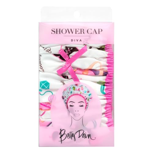 Betty Dain Reusable Shower Cap & Bath Cap, Lined, Oversized Waterproof Shower Caps Large Designed for all Hair Lengths with Lining & Elastic Band Stretch Hem Hair Hat - Fashionista Diva, 1 Count (Pack of 1)