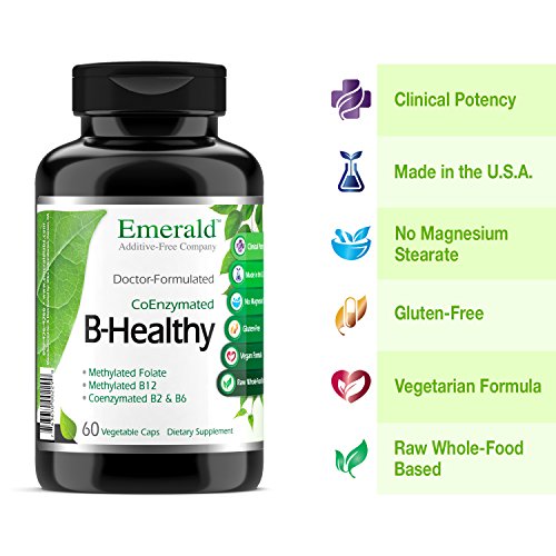 • B Healthy - with L-5 Methyltetrahydrofolate (5-MTHF) Coenzymated Folic Acid - Helps Improve Energy, Lower Stress, Fatigue, & Healthy Immune System - Emerald Labs - 60 Vegetable Capsules