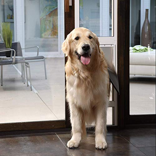 • PetSafe Sliding Glass Pet Door - No-Cut DIY Install Doggy Door for Renters - Aluminum Frame - Adjustable Height 75 7/8" to 81" - Ideal for Medium Dogs Up to 40 lb - Bronze