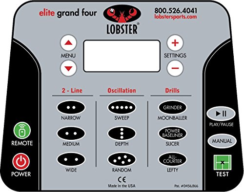 Lobster Sports - Elite Grand Four - Battery-Powered Tennis Ball Machine - Grinder Drill - Six Pre-Loaded Drills - Fully Random Oscillation - 2-Line Feature - Translucent Hopper - 150-Ball Capacity, Supply