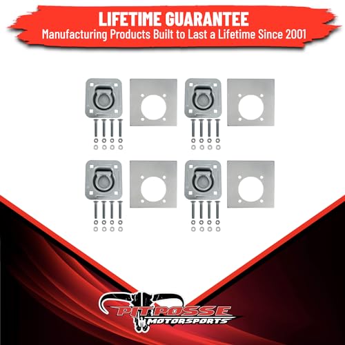 • Pit Posse 11005K-4 Cargo Trailer Recessed Pan D Ring Floor Rope Anchor Tie Down - 6,000 Lbs. Breaking Strength - 4 Mountings Points - with Washers & Mounting Hardware (4 Pack) 5th Wheeler Snowmobile