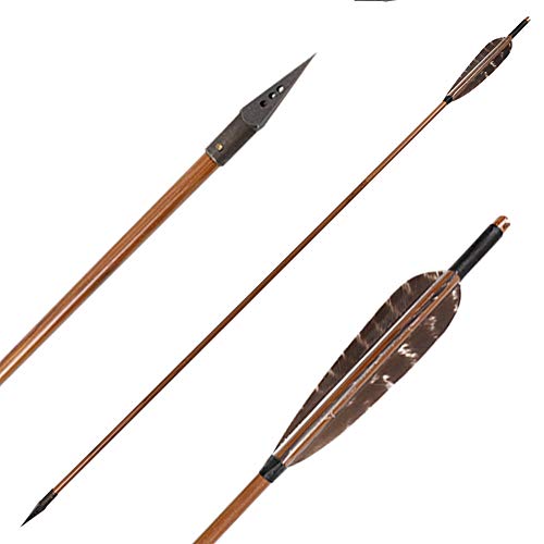• Huntingdoor 12 Pack 31 inch Bamboo Shaft Archery Hunting Arrows Fletching With Pheasant Feathers With A-30A Broadheads 150 Grain