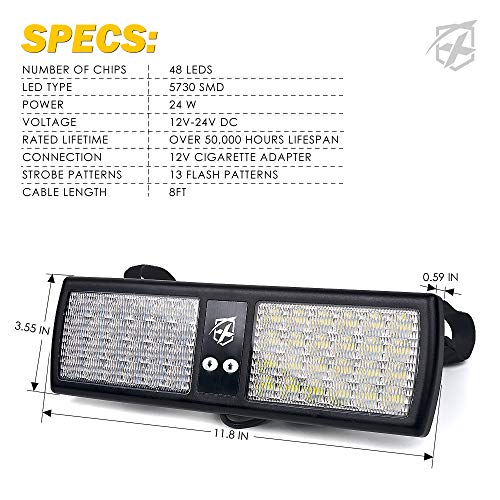 • Xprite White Blue LED Visor Strobe Flashing Lights Sunshield Hazard Warning Light for Law Enforcement Police Volunteer Firefighter Emergency Vehicles Trucks Cars