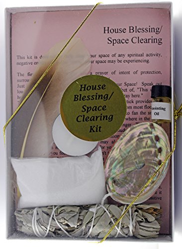 • House Blessing/Space Clearing Kit with White Sage, Abalone Shell, Sea Salt, White Candle, Anointing Oil, Feather (6-7"), Instructions