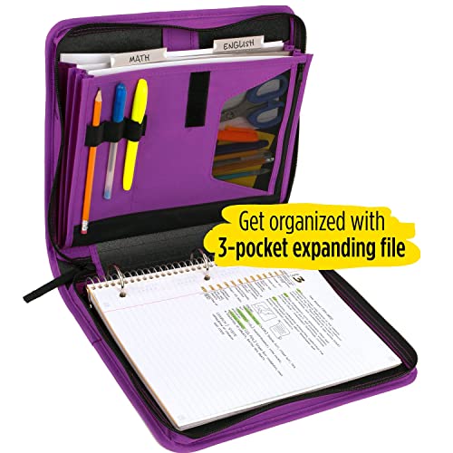 • Five Star Zipper Binder, 1-1/2 Inch 3-Ring Binder for School, 3 Pocket Expanding File, 500 Sheet Capacity, Purple (72532)