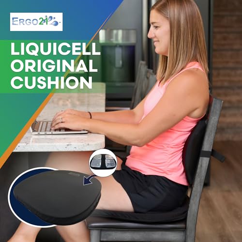 • ERGO21 Original Seat Cushion - Liquicell Membrane Technology for Pressure Relief, Tailbone Pain, Sciatica, Hip & Lower Back Pain - Long Sitting on Car Seat, Office/Home Chair (18" W x 17" x 2")
