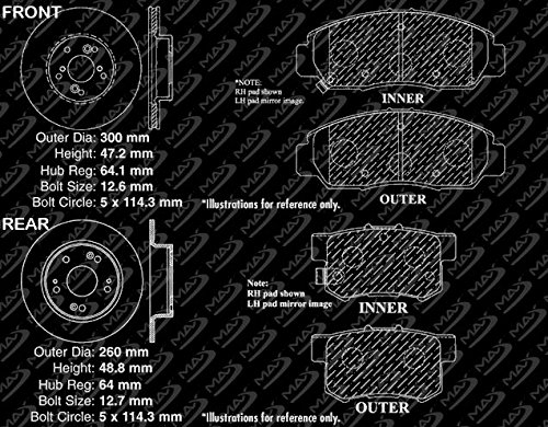 Max Advanced Brakes Max Brakes Front & Rear Premium Brake Kit [ OE Series Rotors + Ceramic Pads ] KT006943 | Fits: 2003 03 Honda Accord Coupe V6 w/ 6 speed Manual Transmission Models