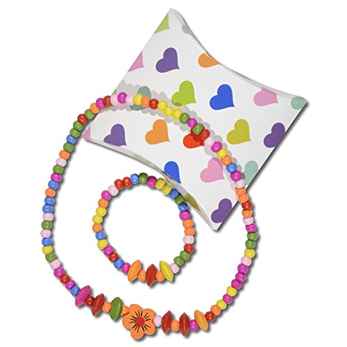 SMITCO Toddler Jewelry for Girls - Kids Wooden, Beaded Toy Necklace, Bracelet and Ring Set for Play Pretend or Dress Up with Costume Accessories - Non-Toxic and Safe for Children Ages 3 to 8