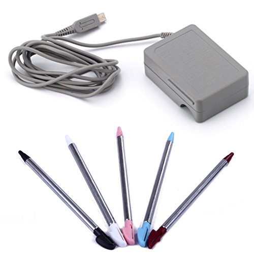 • HDE Nintendo 3DS Power Adapter AC Wall Charger + 5-Pack Metallic Retractable Touchscreen Stylus Pens