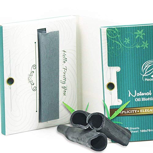 PleasingCare Natural Face Oil Blotting Paper - Bamboo Charcoal 100 Counts, Easy Dispensing Oil Absorbing Sheets, Premium Handy Facial Blotting Papers - Face Skin Care or Beauty Make Up Must Have, Bamboo-Charcoal, 100 Count (Pack of 1)
