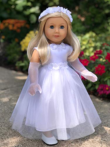 • Little Angel - 4 Piece Outfit - White Satin and Tule First Communion Dress for Dolls with Long Gloves, Veil and White Shoes - 18 Inch Doll Clothes (Doll not Included)