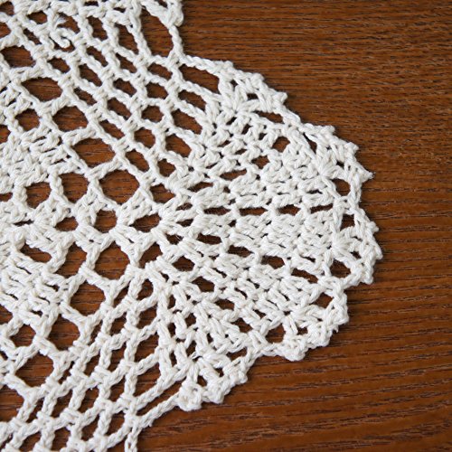 • USTIDE Floral Hand Crochet Table Runner White Lace Table Doilies Cotton Table Placemats Oval Table Runners, 11.8"x23.6"