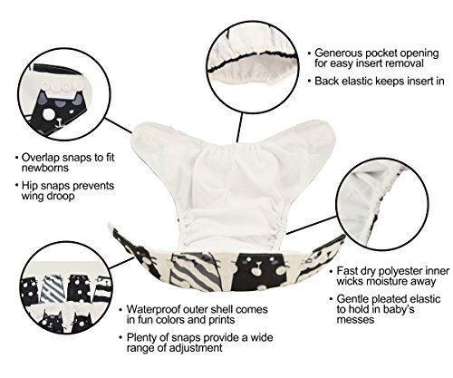 • Babygoal Baby Cloth Diapers, One Size Reusable Washable Pocket Nappy, 6pcs Diapers +6pcs Microfiber Inserts+4pcs Bamboo Inserts,Girl Color 6FG34D