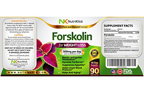 • Nutriklick Forskolin Natural Extract Weight Loss and Appetite Suppressant Dietary Antioxidant Supplement for Adults (90 Capsules)