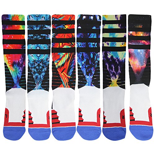 • J'colour Knee High Socks, Mens Novelty Printed Elite Dri-Fit Comfort Cotton Basketball Volleyball Socks 1 Pair Red Fiery Leaves