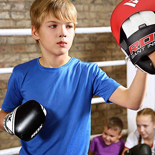 • RDX Kids Boxing Gloves for Training & Muay Thai - Maya Hide Leather Junior 4oz, 6oz Mitts for Sparring, Fighting & Kickboxing - Good for Youth Punch Bag, Grappling Dummy and Focus Pads Punching