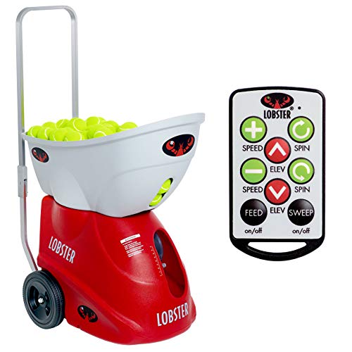 • LOBSTER Sports - Elite Two Tennis Ball Machine with Elite 10-Function Remote Control - Triple Oscillation - Lightweight - 4- to 8-Hour Battery Life - 50 Degree Lobs - Optional Accessories
