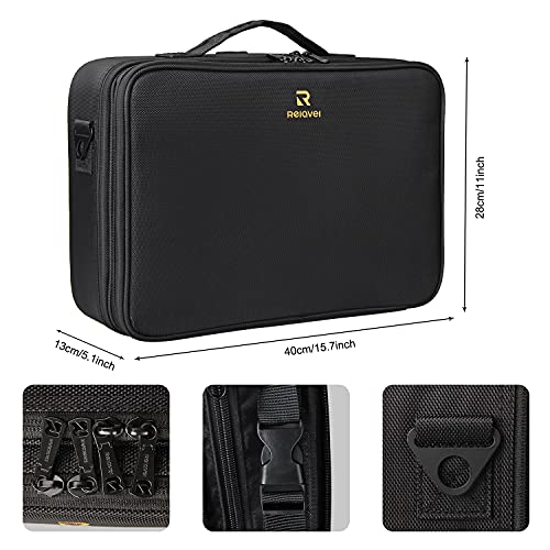 Relavel Makeup Case Large Makeup Bag Professional Train Case 16.5 inches Travel Cosmetic Organizer Brush Holder Waterproof Makeup Artist Storage Box, 3 Layer Large Capacity, with Adjustable Strap, Black