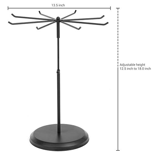 • MyGift 8-Hook Adjustable Height Black Metal Rotating Necklace & Bracelet Organizer, Jewelry Accessory Display Tower Stand