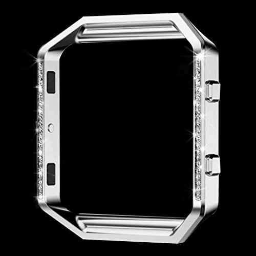 GBSELL New Luxury Inlaid Crystal Stainless Steel Metal Watch Frame Holder Shell For Fitbit Blaze,Sliver, Unisex-adult