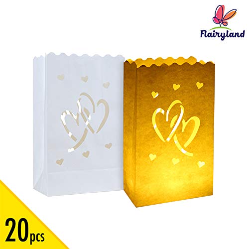 • 20pcs White Luminary Candle Bags Special Lantern Luminary Bag with Duo Heart Durable and Reusable Fire-Retardant Cotton Material for Wedding Valentine Reception Engagement Marriage Proposal Event