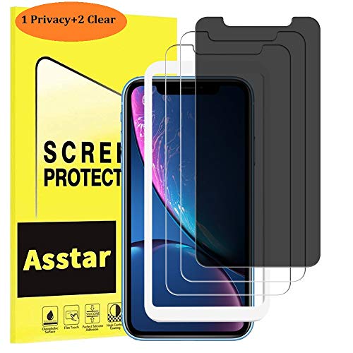 iPhone Xr Privacy Screen Protector, Asstar [No Worry Easy Installation Guidance Alignment Frame] [Anti Spy] [Anti Glare] Tempered Glass Perfect Touch Accurate Case Friendly Screen Protector [3P], 1 Privacy+2 Clear With Frame