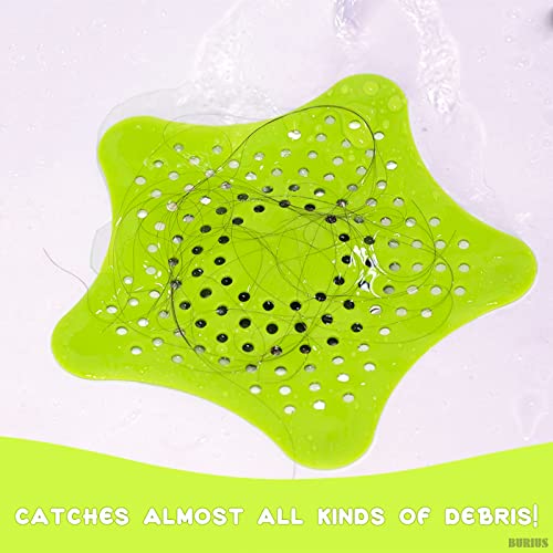 BURIUS 3Pcs Starfish Rubber Sink Strainers - Drain Hair Catcher - Kitchen Sink Strainer Stopper Silicone Drain Cover - Tub Drain Hair Catcher, Bathroom Sink Drain Strainer for Sink, Bathtub Strainer, White, Blue, Green, 3 Count (Pack of 1)