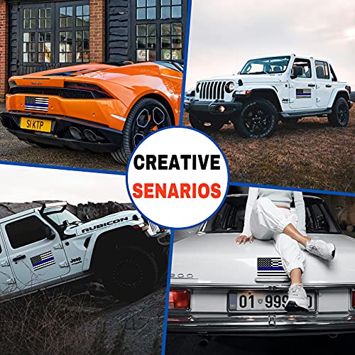 CREATRILL Reflective US Flag Decal Packs with Thin Blue Line for Cars & Trucks, 5 x 3 inch American USA Flag Decal Sticker Honoring Police Law Enforcement Vinyl Window Bumper Tape (5-Pack)