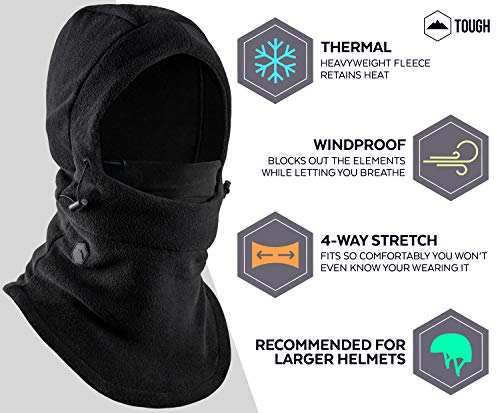 Tough Headwear Balaclava Ski Mask for Men and Women - Heavyweight Fleece Winter Shiesty Cover - Cold Weather Face Masks, Black, One Size