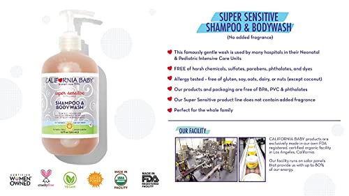 • California Baby Super Sensitive Shampoo and Body Wash - Hair, Face, and Body, Gentle, Fragrance Free, Allergy Tested, Dry, Sensitive Skin, 100% Plant-Based - USDA Certified, 19 oz, 2 Pack
