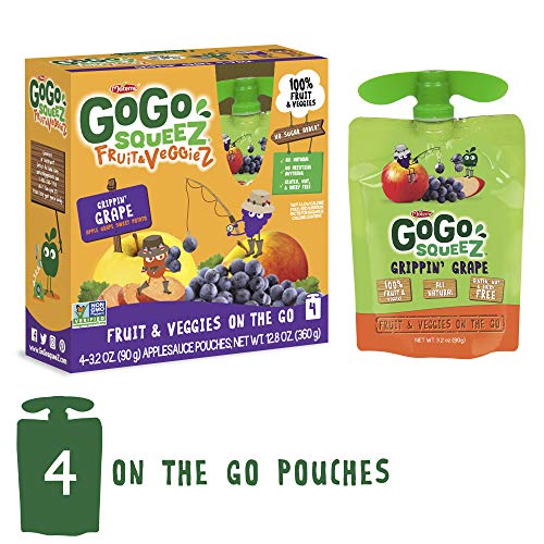 • GoGo squeeZ Fruit & VeggieZ on the Go, Apple Sweet Potato Grape, 3.2 Ounce (4 Pouches), Gluten Free, Vegan Friendly, Healthy Snacks, Unsweetened, Recloseable, BPA Free Pouches