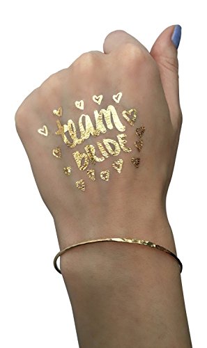 • PartyFuFu Bachelorette Party Tattoos Mixed Set of 40 Gold Metallic Temporary Flash Tattoos for Women & Girls Over 50 Tattoos Makes a Perfect Gift