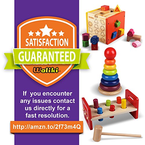 • WALIKI TOYS Pounding Bench with Hammer, Wood Shape Sorting Box, Rainbow Stacker COMPLETE SET (3 wooden toys bundle)