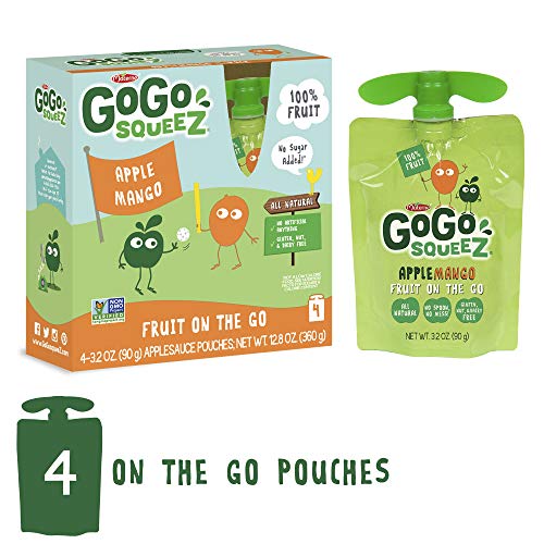 • GoGo squeeZ Applesauce on the Go, Apple Mango, 3.2 Ounce (4 Pouches), Gluten Free, Vegan Friendly, Healthy Snacks, Unsweetened Applesauce, Recloseable, BPA Free Pouches