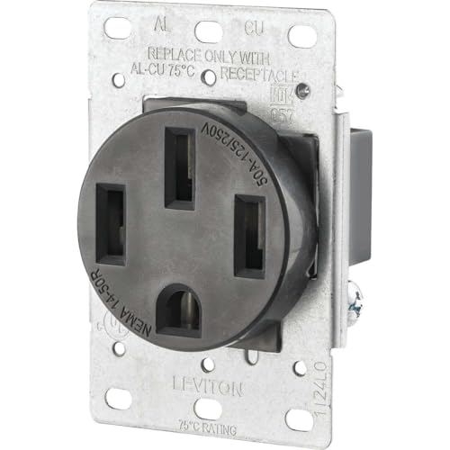 • Leviton 279-S00 50 Amp, 125/250V, Nema 14-50R, 3P, 4W, Flush Mounting Receptacle, Straight Blade, Industrial Grade, Grounding, Side Wired, Steel Strap, Black