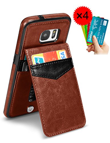 • Galaxy S7 Edge Case, SAMONPOW Faux Leather Cover with Back Flip Feature Galaxy S7 Edge Wallet Case ID Credit Debit Card Slot Holders Carrying Case Protective Shell for Galaxy S7 Edge - Brown