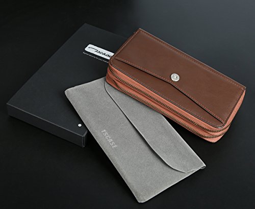 • TSCASE Zipper Leather Wallet Case, Clutch Bag Phone Wallet Cover with Card Holder, Hand Strap and Mirror for iPhone 6/6S/7 Plus, Samsung Galaxy S8//S7/S6/LG, Brown