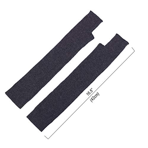 • Cashmere Blend Arm Warmer Winter Fingerless Gloves Knit Long Sleeve Mitten Gloves Wrist Warmer with Thumb Hole for Women (Dark Grey)