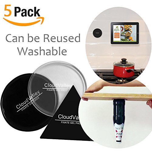 • Premium Fixate Cell Phone Pads by CloudValley, Sticky Anti-Slip GEL Mat [5 PACK-Black&Clear] - can Stick to iPhone, Glass, Whiteboards, Metal, Kitchen Cabinets or Tile, Car and many more