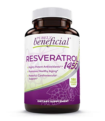PURELY beneficial RESVERATROL1450-90day Supply, 1450mg per Serving of Potent Antioxidants & Trans-Resveratrol, Promotes Anti-Aging, Cardiovascular Support, Maximum Benefits (1bottle), 180 Count (Pack of 1)