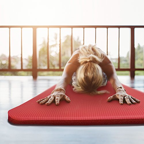 Crown Sporting Goods Yoga Cloud - Extra Thick 1" Exercise Mat with Shoulder Sling - 25mm Non-slip, Moisture-Resistant Foam Cushion for Pilates and Working Out - Ultra Balance & Support for Joint Health, & Physical Therapy, Red