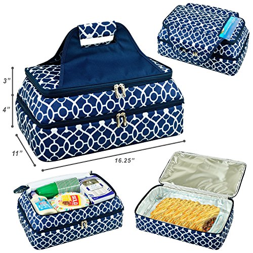 Picnic at Ascot Original Insulated Double Layer Thermal Food and Casserole Carrier- keeps Food Hot or Cold- Designed & Quality Approved in the USA, Trellis Blue, 1 Count (Pack of 1)