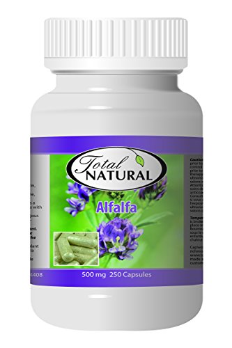 • Natural Alfalfa Supplement 500mg 250 Capsules [1 Bottle] by Total Natural, Premium Wild Harvest Alfalfa Tablets for Regulating Cholesterol, Acid-Base Balance